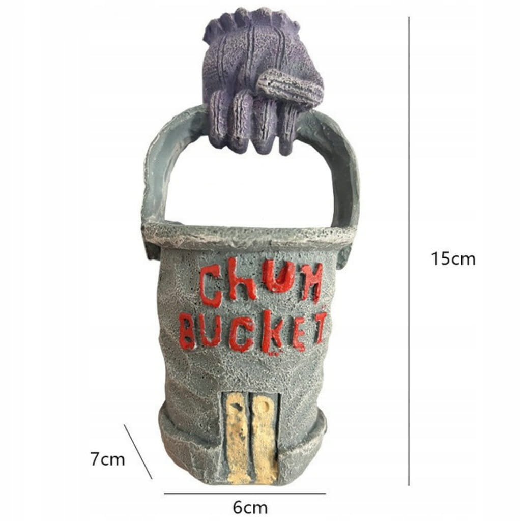 Wprowadź do swojego akwarium odrobinę humoru i klimatu znanego z bajki SpongeBob! Ozdoba przedstawiająca Chum Bucket – słynną restaurację Planktona to nie tylko zabawny element dekoracyjny, ale również funkcjonalna kryjówka dla ryb i krewetek.