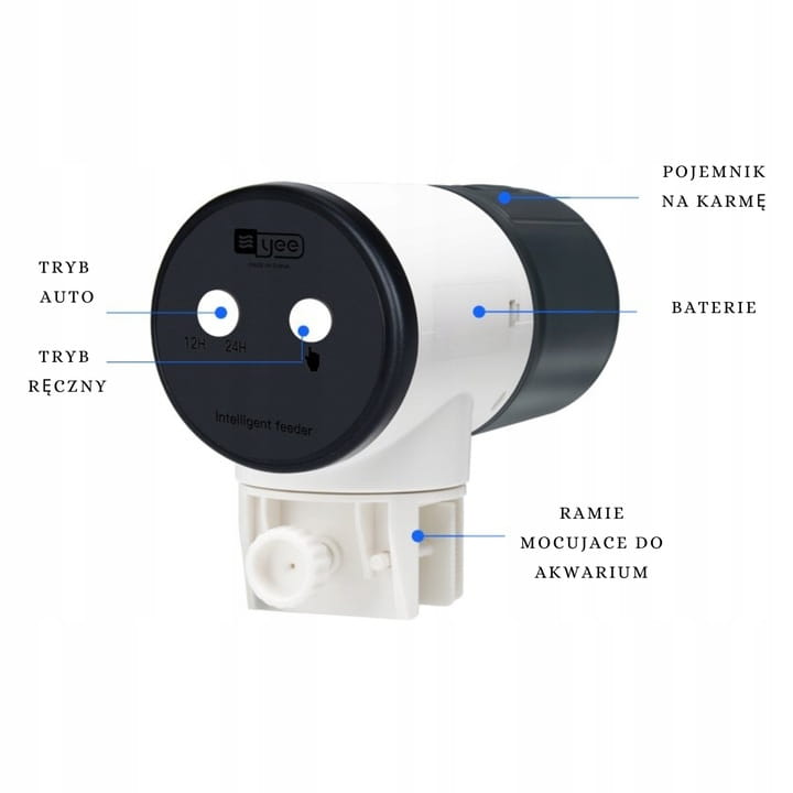 - Automatyczny: Możliwość ustawienia karmienia co 12 lub 24 godziny.