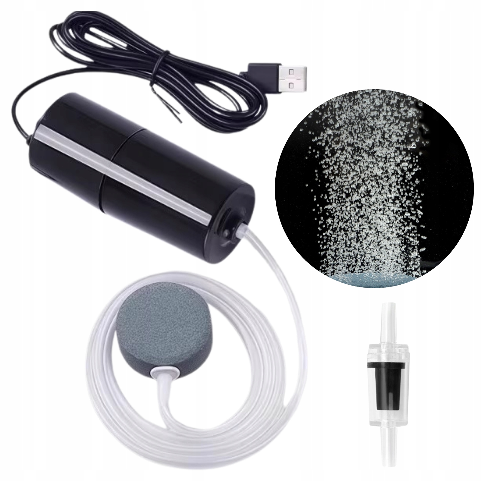 NAPOWIETRZACZ DO AKWARIUM MINI PRZENOŚNY USB KOMPLETNY ZESTAW 4w1 1W 5V