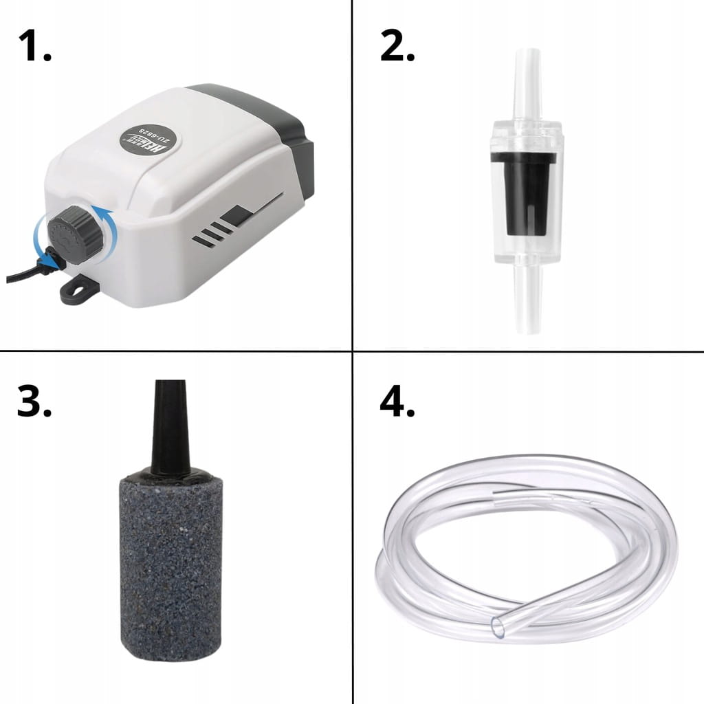 NAPOWIETRZACZ DO AKWARIUM POMPKA Z REGULACJĄ ZESTAW KOMPLETNY 4W1 4W 280L/h