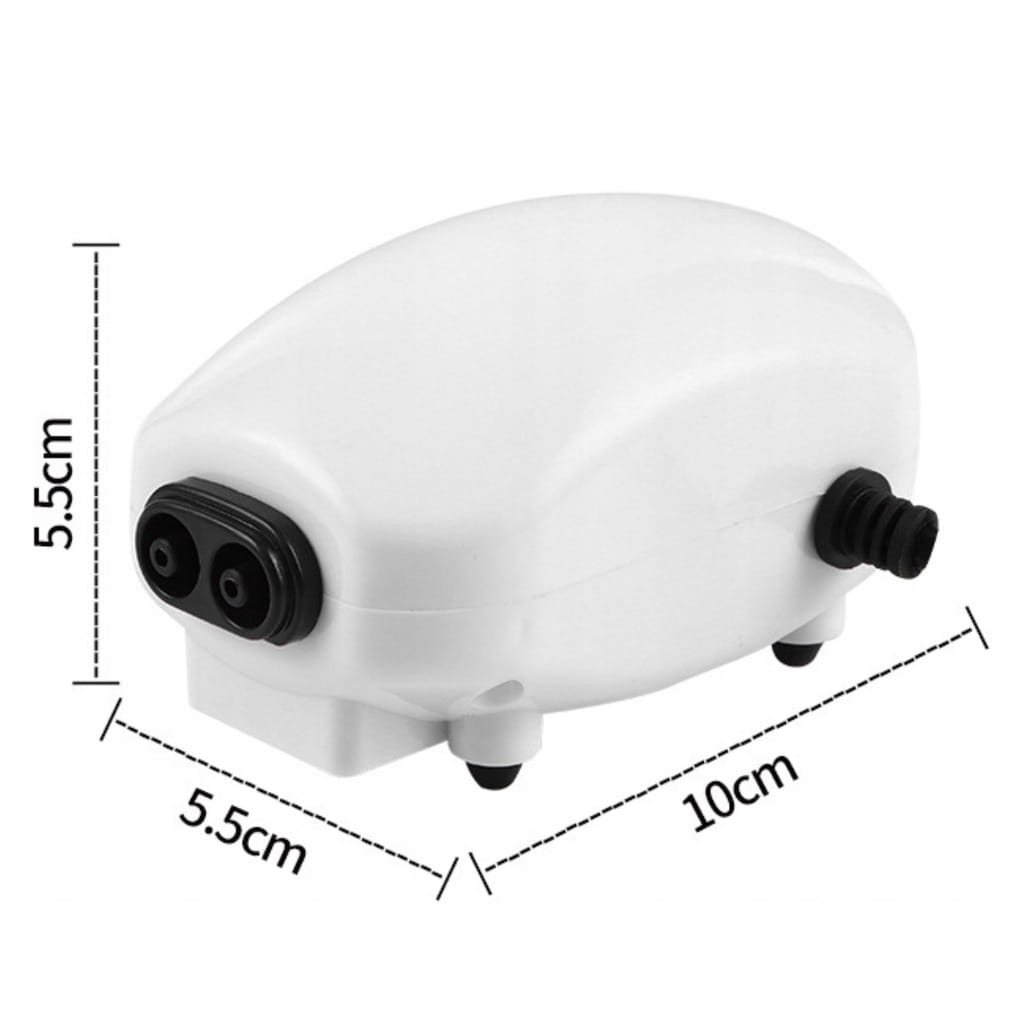 ▶️ Mimo wysokiej wydajności, napowietrzacz ma małe wymiary (10 x 5,5 x 5,5 cm), co pozwala na łatwe umieszczenie go w każdej przestrzeni obok akwarium.