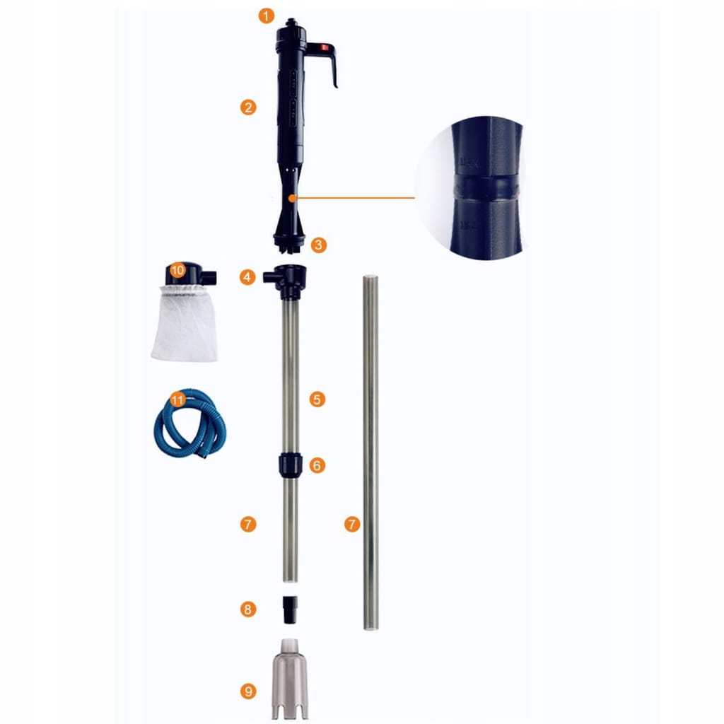 3️⃣Teleskopowa rurka prowadząca – Możliwość regulacji długości odmulacza do różnych wielkości akwariów.