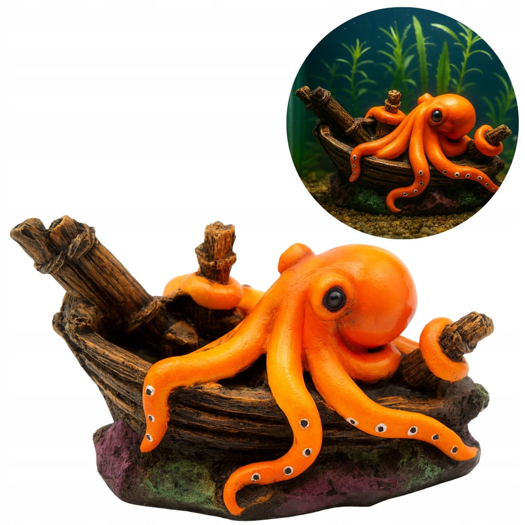 ✅ Ozdoba akwariowa – Ośmiornica na wraku statku ✅