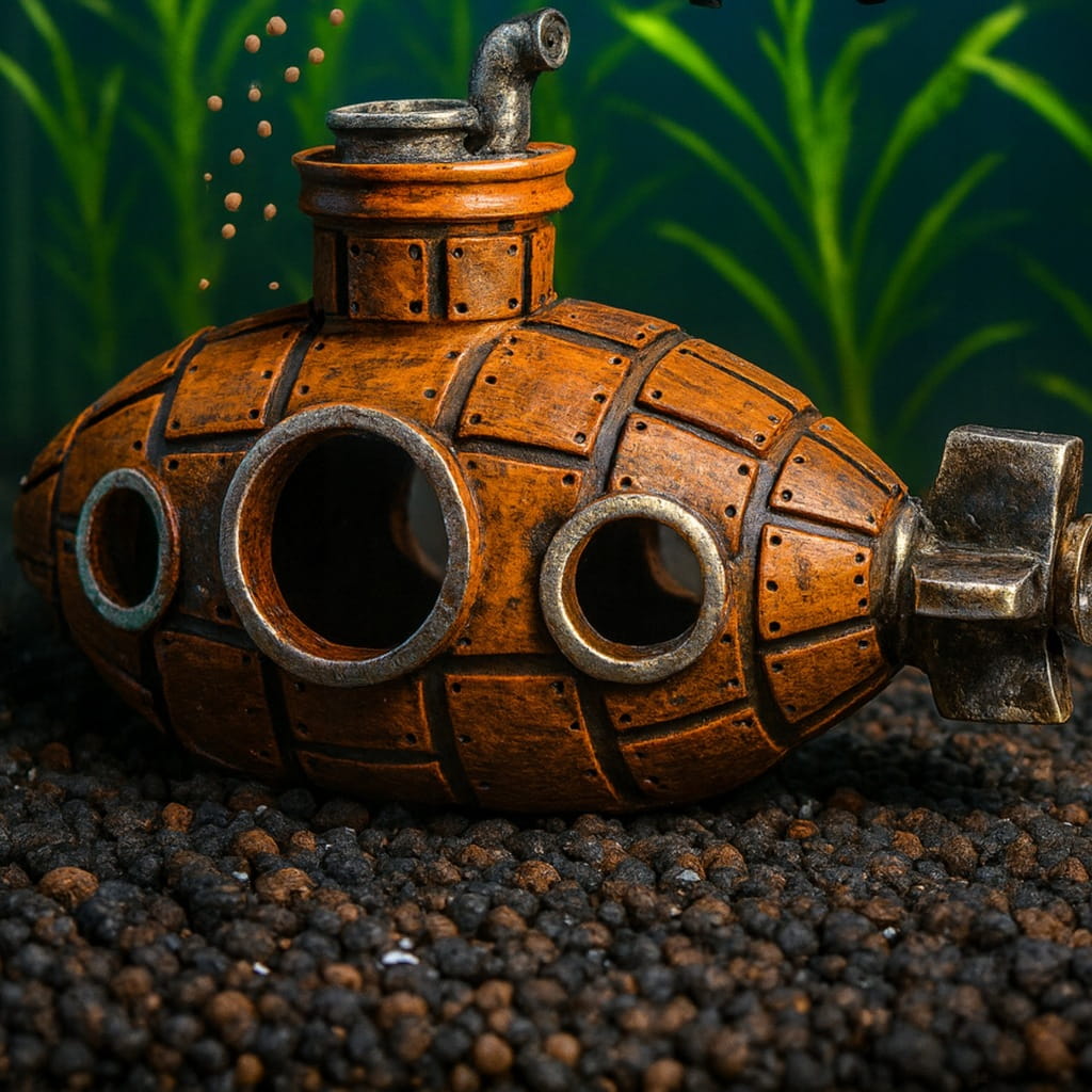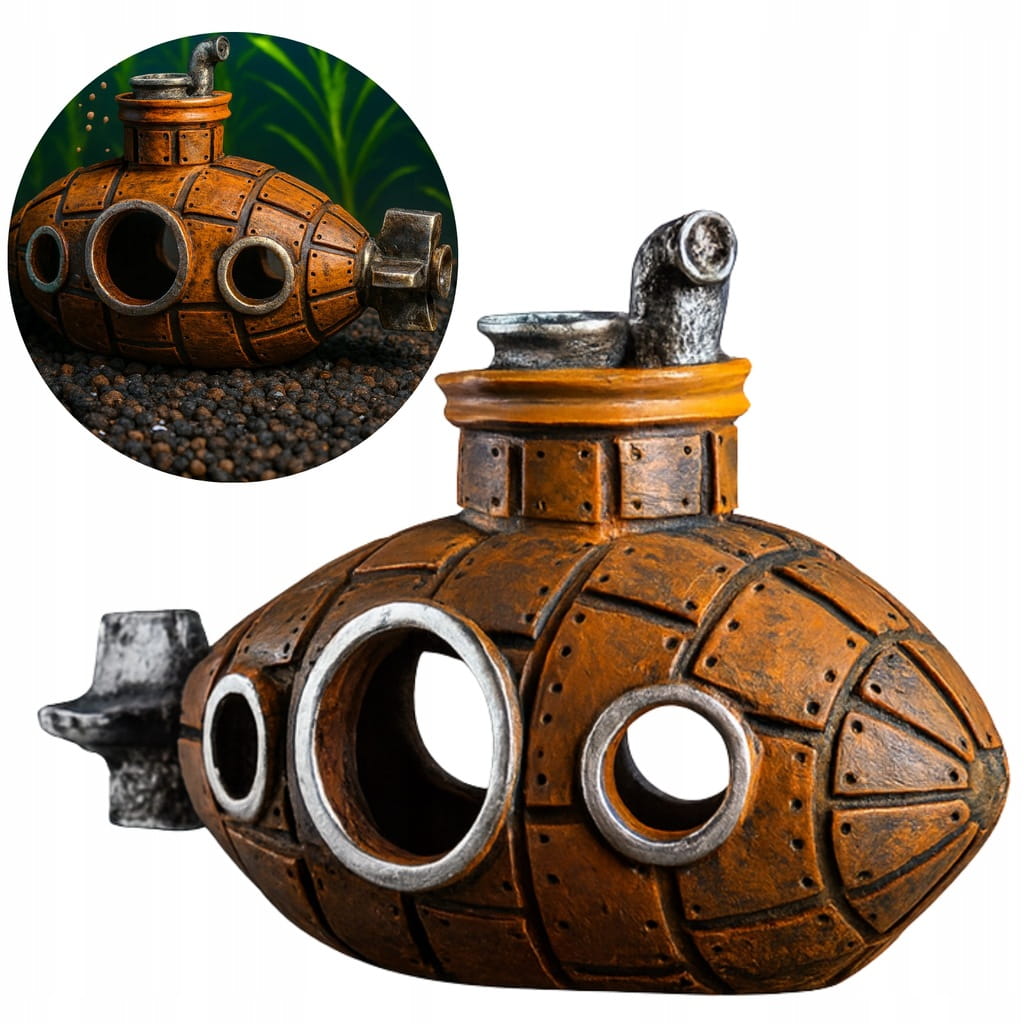 Łódź podwodna to nie tylko dekoracja – to praktyczny element aranżacji akwarium, który daje rybom i krewetkom naturalne miejsce do zabawy, eksploracji i odpoczynku. Dzięki unikalnemu wyglądowi stanie się centralnym punktem zbiornika i nada mu wyjątkowego charakteru.