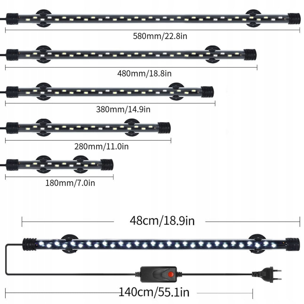 ŚWIETLÓWKA LED DO AKWARIUM BIAŁE ŚWIATŁO WODOODPORNA UCHWYTY 30LED 10W 48CM