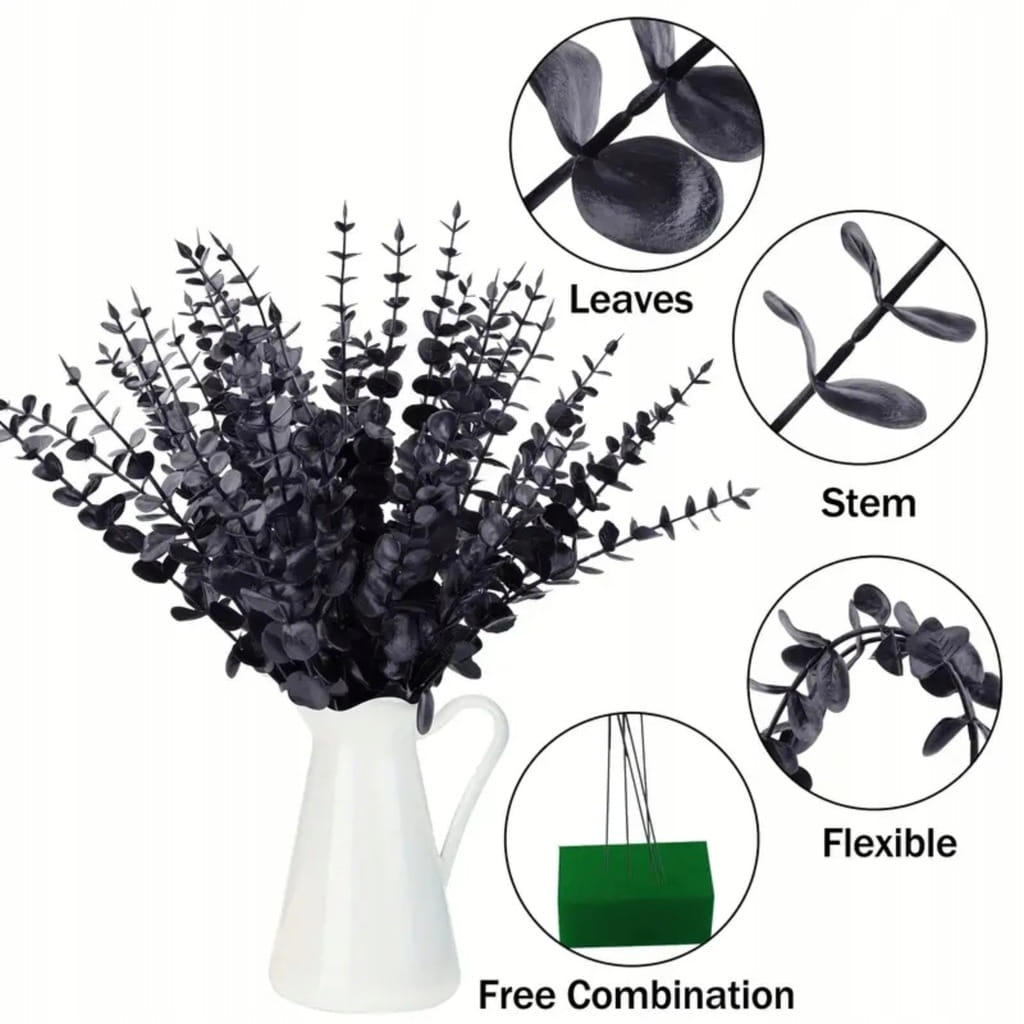⭐✅ SZTUCZNA GAŁĄZKA EUKALIPTUSA CZARNA - 1szt. ✅⭐