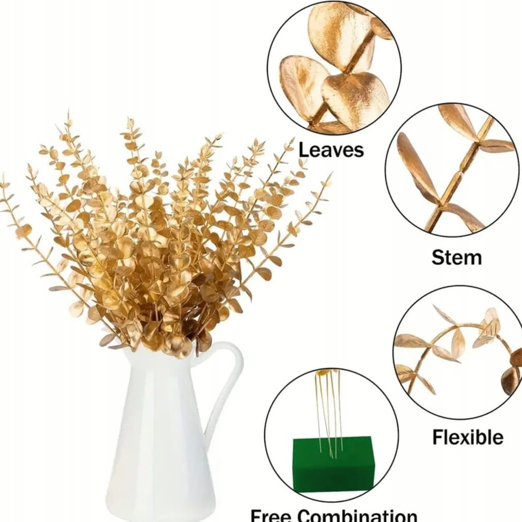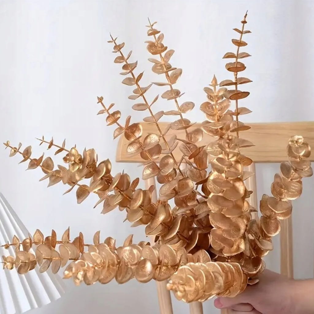 ⭐✅ SZTUCZNA GAŁĄZKA EUKALIPTUSA ZŁOTA - 1szt. ✅⭐
