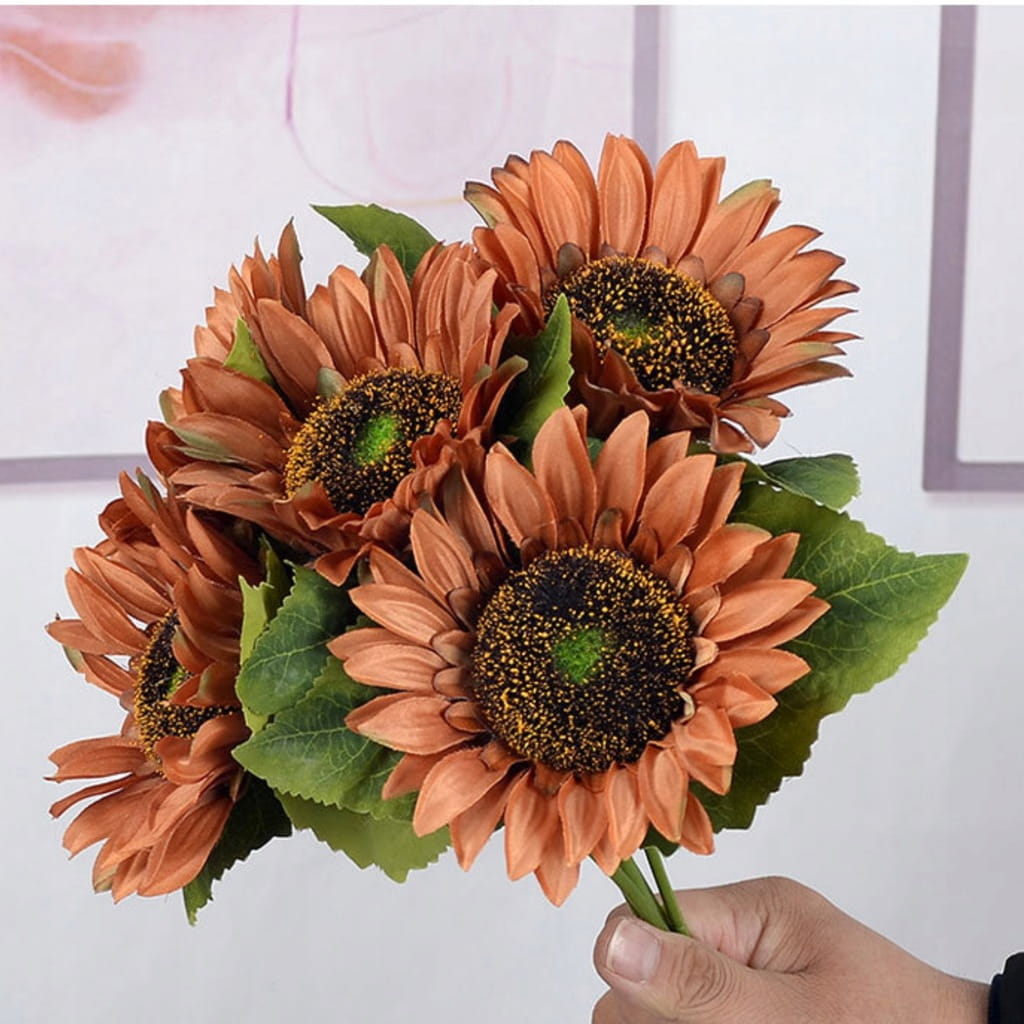 SZTUCZNY SŁONECZNIK BRĄZOWY 1szt. SZTUCZNE KWIATY STROIK BUKIET WAZON 38cm