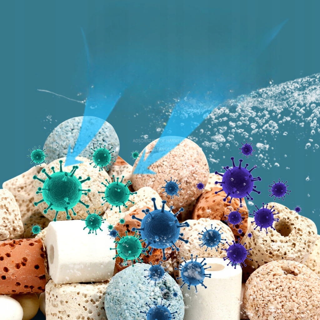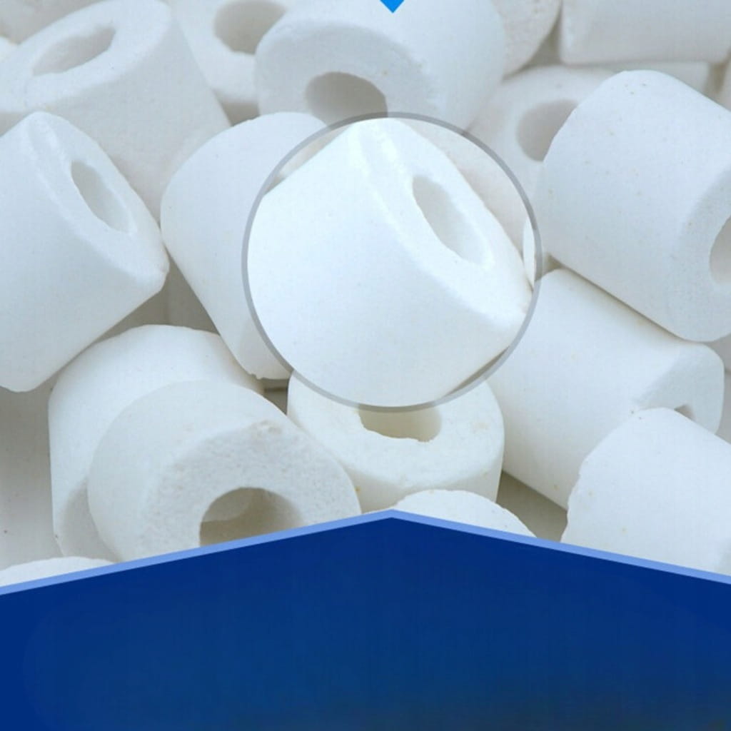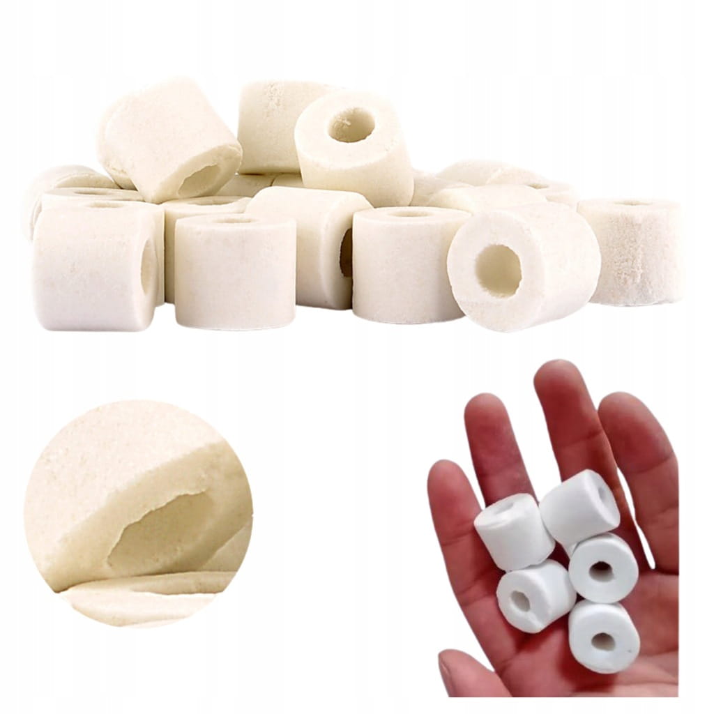 ✅ Optymalna filtracja biologiczna – Pierścienie ceramiczne tworzą idealne środowisko dla bakterii Nitrosomonas i Nitrobacter, które skutecznie usuwają amoniak oraz azotyny z wody.