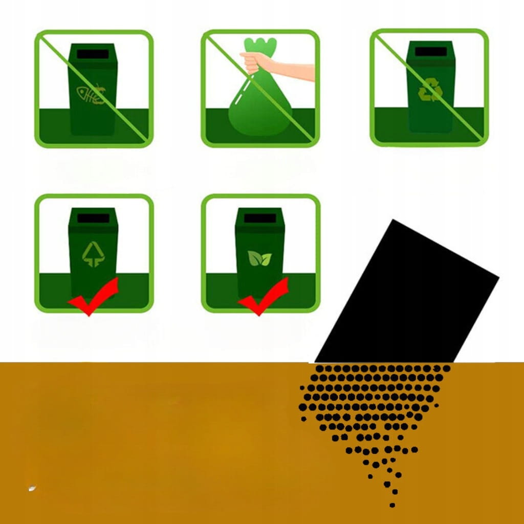 - Po zużyciu wrzuć woreczek do odpowiedniego pojemnika na odpady biodegradowalne.